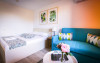 Camera twin - cuprinde un spatiu deschis cu o suprafata de 18 mp, zona pentru dormit cu un pat matrimonial, cu sau fara canapea extensibila 134cm x194cm , baie cu dus, balcon.
