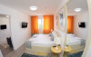 Camera dubla matrimoniala - cuprinde un spatiu deschis cu o suprafata de 16 mp, zona pentru dormit cu un pat matrimonial, cu sau fara fotoliu extensibil 90cm x194cm , baie cu dus, balcon.
