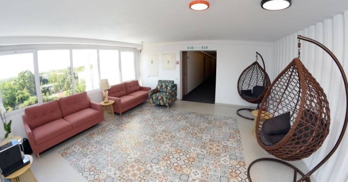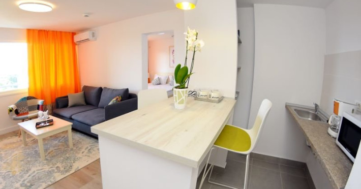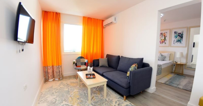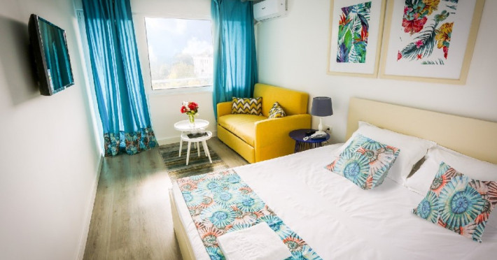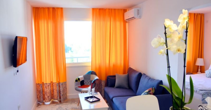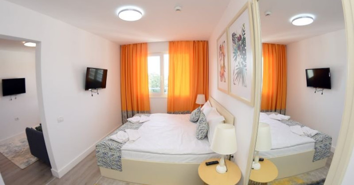 Junior Suite - cuprinde un spatiu de 32 mp, format dintr-un living cu canapea fixa sau extensibila si un dormitor cu pat matrimonial, 1 bai cu dus, balcon deschis , si chicineta dotata cu chiuveta, cuptor cu microunde , frigider, masa de calcat , uscator de par, fier de calcat.