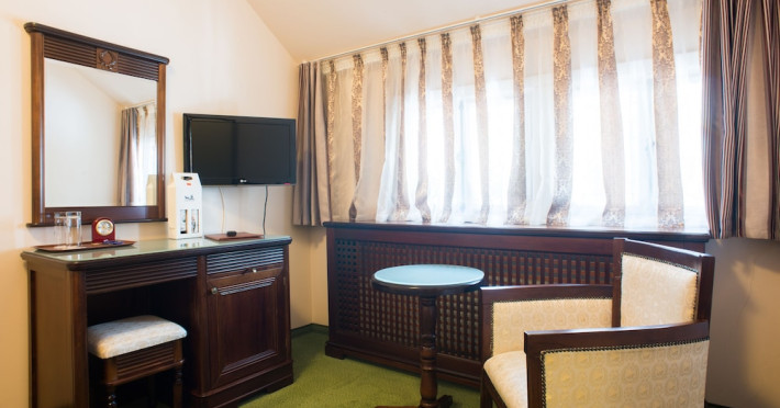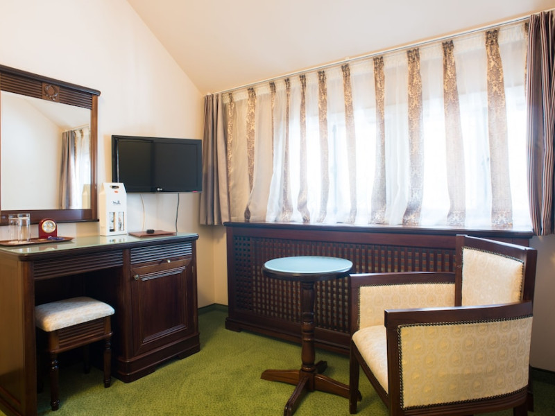 Complex La Tunuri - Vila Economat is the former Royal Guard Office of Peles Castle, located on the Royal Domain directly opposite the castle and just 328 feet from Pelisor Castle. Sinaia Monastery is 1640 feet away. It offers free WiFi in all areas. The classically furnished rooms at the Complex La Tunuri - Vila Economat feature a mini-bar, a flat-screen TV, and a private bathroom. International and traditional Romanian cuisine is served in the La Tunuri restaurant, where you can also have an à la carte breakfast for an extra charge. Guests can also enjoy drinks at the Regal Peles Café, which features a terrace with superb views of Pele Castle. Free private parking is available on site. The Sinaia cable car is 0.6 mi away and the Sinaia Train Station is 1.9 mi from the property.WiFi is available in all areas and is free of charge. Free private parking is available on site (reservation is not needed). Pets are not allowed. Children 1 and up are allowed. Children from 1 to 6 years old stay for free when using an existing bed. Children from 7 to 11 years old stay for 50 lei per person, per night when using an existing bed. Children from 12 to 17 years old stay for 90 lei per person, per night when using an existing bed. You havent added any cribs. You havent added any extra beds. Additional fees are not calculated automatically in the total cost and will have to be paid for separately during your stay.Checkin Time: 15:00Checkout End Time: 12:00Datorita dinamicitatii domeniului disponibilitatea ofertelor se modifica de la un moment la altul. De aceea ofertele sunt valabile in limita locurilor disponibile. Agentia nu este responsabila pentru eventualele neconcordante care pot aparea intre informatiile privind tarifele si alte detalii din site si informatiile primite in agentie. In aceste cazuri vor avea prioritate, intotdeauna, informatiile primite in agentie.