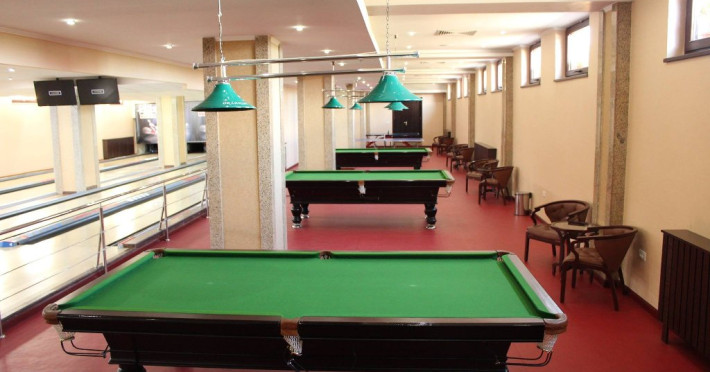 Activitati interioare: piscina interioara si exterioara, piscina pentru copii, loc de joaca pentru copii, teren de sport (tenis, fotbal), sala fitess, sauna, masaj, bowling-biliard.
