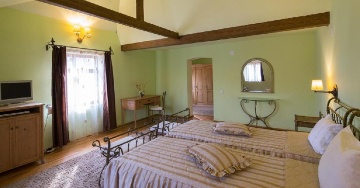 Conceptul arhitectural a pastrat atmosfera medievala originala. Mobilierul din fier forjat medieval, lampile traditionale si oglinzile facute manual in Italia dupa designul local medieval, intaresc atmosfera. Camerele confortabile, peretii grosi si podelele din lemn masiv readuc senzatia istorica de vechi.