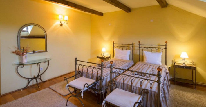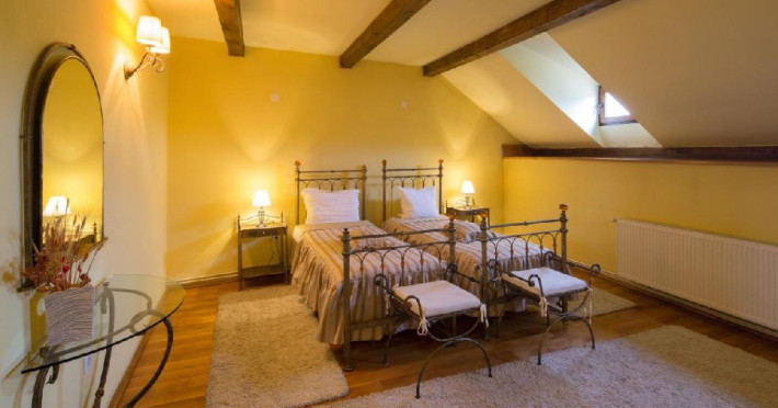 Camera dubla twin este o camera generoasa, cu o suprafata de aproximativ 45mp iar la intrare se afla un hol generos. Din acest hol turistii au acces catre o baie spatioasa cu cada si catre dormitor care ii intampina cu un spatiu generos, luminos, elegant si decorat cu bun gust. Pentru decorarea acestor case vechi s-au folosit de asemenea aceleasi decoratii si componente (mobilier saxon, fier forjat, etc) care cresc calitatea si stilul cladirii. Pentru familiile cu copii este alegerea perfecta daca opteaza pentru un pat suplimentar.