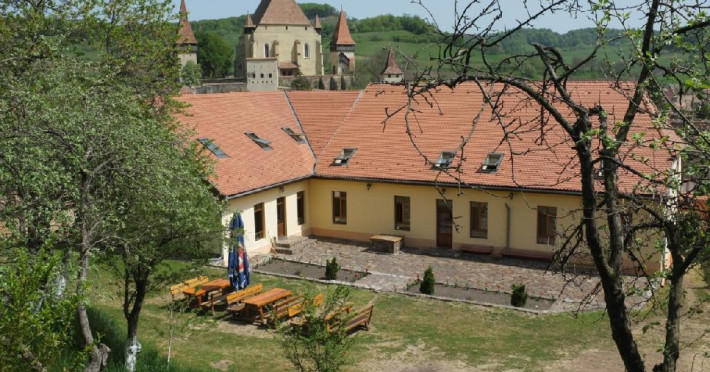 O panorama uimitoare asupra intregului sat si biserica fortificata este oferita de camerele de la ultimul etaj si din partea de sus a livezii.