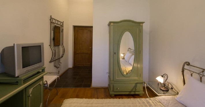 Ambele apartamente dispun de un dormitor dispune de un pat matrimonial mare, o baie si un living room cu geamuri largi, un birou si o canapea din piele. Din livingroom se merge direct in dormitor unde mai presus de descrierea anterioara turistii se pot bucura de urmatoarele facilitati: TV, DVD player, Wi-Fi GRATUIT, baie cu dus sau cada.