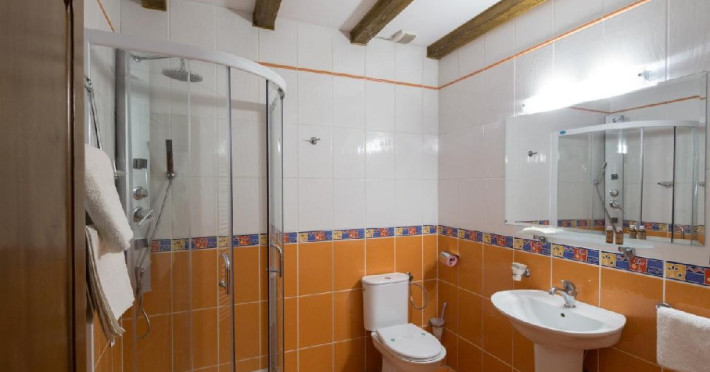 Fiecare dormitor are o baie proprie cu cada. Detaliile impozante in stil medieval din Pensiunea Unglerus (mobilier din fier forjat si mobilier saxon) le puteti intalni si aici.