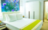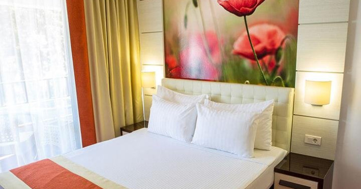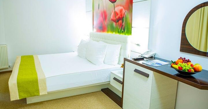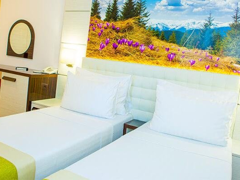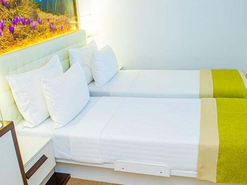 Apartamentul dublu dormitor este un ansamblu compus din 2 dormitoare decomandate, fiecare cu pat matrimonial si baie proprie. Acest tip de camera nu suporta adaugarea unui pat suplimentar.