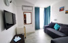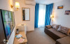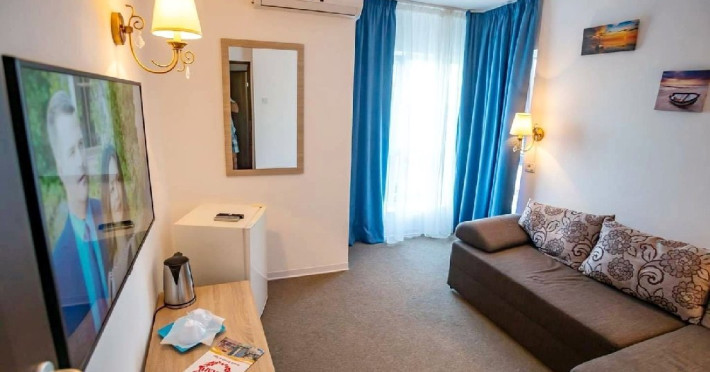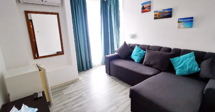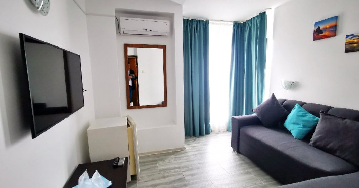 Apartamentul este compus din dormitor matrimonial si living cu canapea extensibila. Dotarile sunt aceleasi ca si la camerele duble. Suprafata 30 mp.