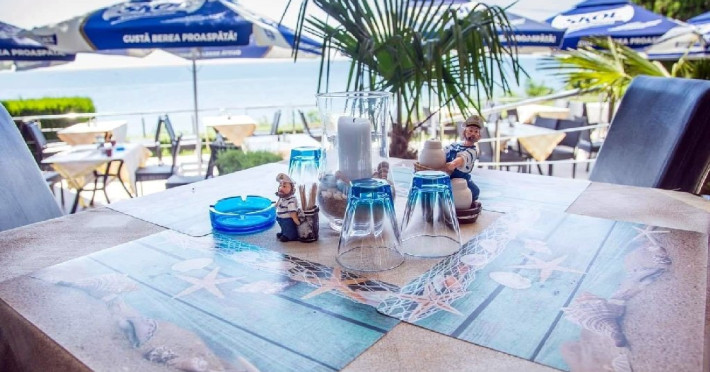 Restaurantul hotelului ofera diverse preparate culinare din bucataria internationala, precum si din cea traditional romaneasca, iar seara organizeaza evenimente cu muzica live sau programe artistice. Localul este prevazut cu o terasa suspendata partial acoperita, inconjurata de verdeata, ce ofera o vedere minunata asupra marii.