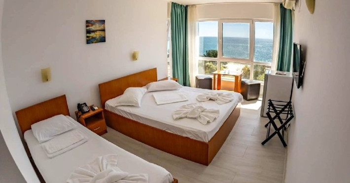 Camere: Hotelul Pam Beach este clasificat la categoria 3* (trei stele), dispune de camere dotate cu 2 paturi/pat matrimonia. Toate camerele sunt dotate cu baie cu dus, internet wireless, tv prin cablu, minibar- racitor, telefon, uscator par, uscator rufe, aer conditionat.