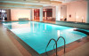 Cand temperatura permite, terasa exterioara a piscinei ofera momente de relaxare pe sezlongurile asezate la soare.
