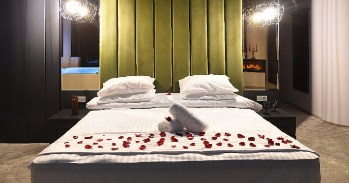 Hotelul dispune de camere matrimoniale sau twin si camere VIP, cu semineu sau jacuzzi. Toate spatiile de cazare sunt dotate cu Tv cablu, baie proprie cu artcole de toaleta, aer coditionat.