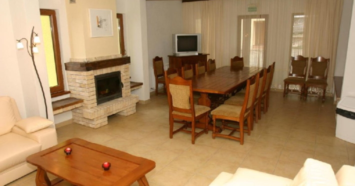 Vila are 7 camere duble si un living generos la parter. Toate camerele au baie proprie si televizor.