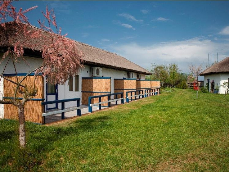 CAMERE CU TERASA FARA IESIRE LA LAC situate in vila SINOE, DOLOSMAN, AGIGHIOL - pozitionate pe mijlocul insulei, cu terasa imprejmuita de stuf, dotate cu: un pat dublu matrimonial sau doua paturi twin, baie proprie, aer conditionat, LCD, minifrigider, internet wireless.