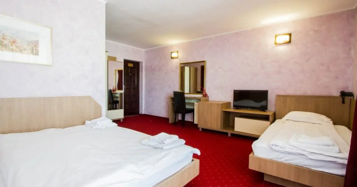 Apartamentul standard este format din doua incaperi, cu pat matrimonial si doua paturi single.