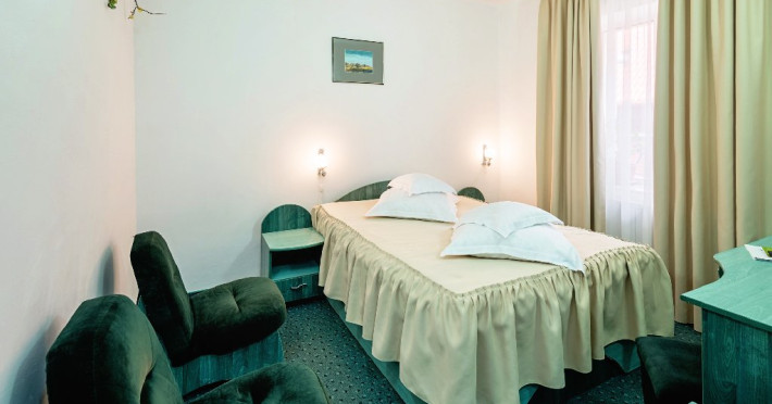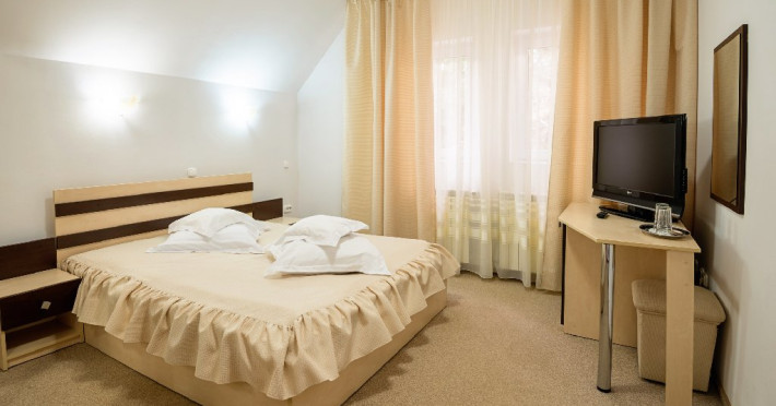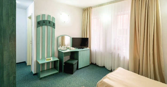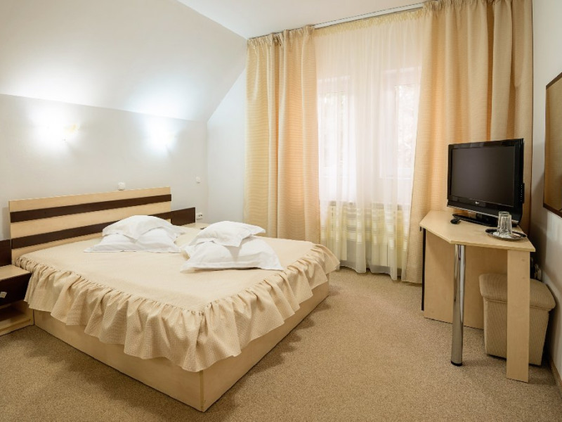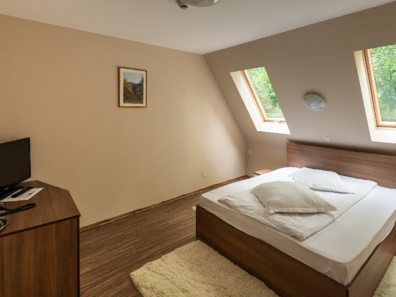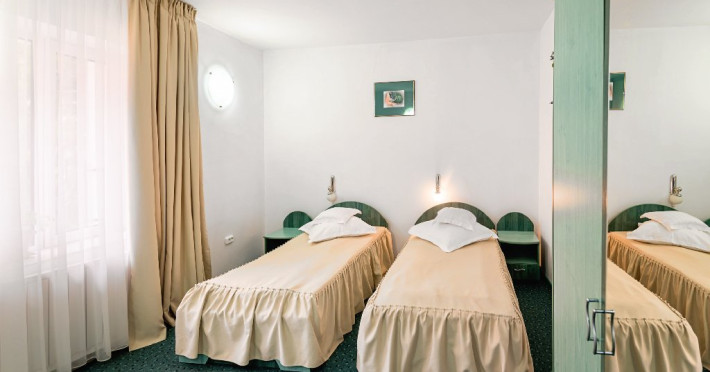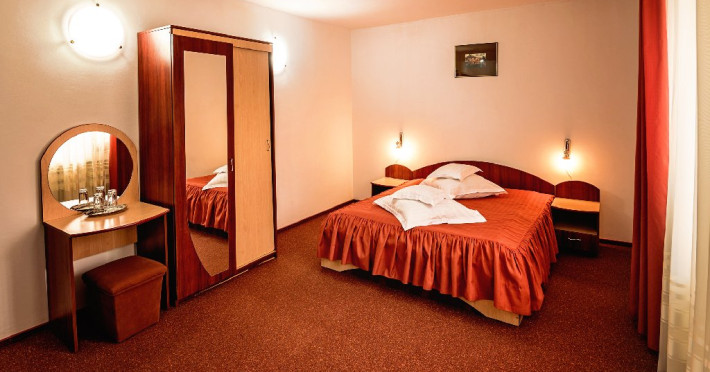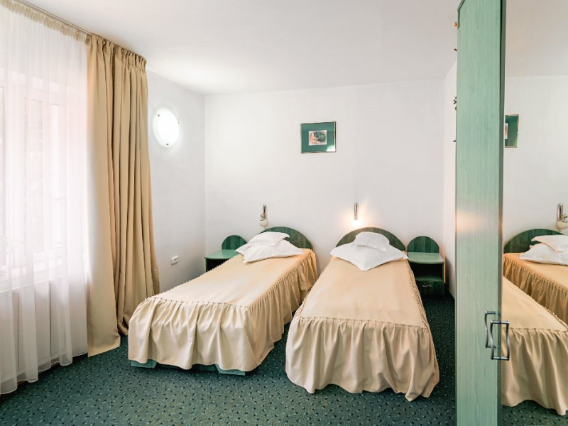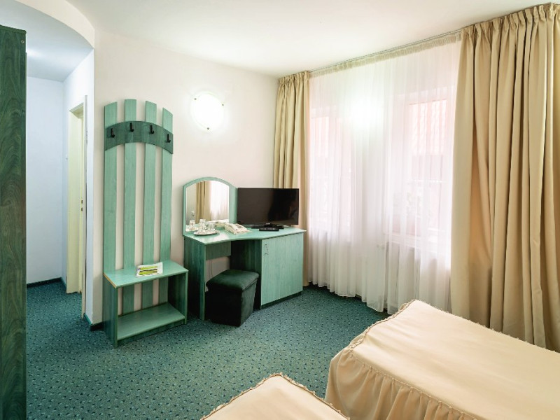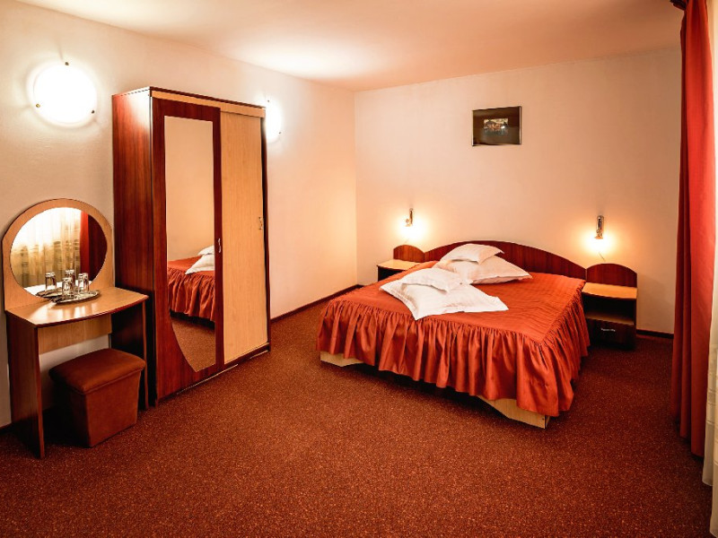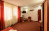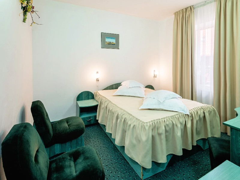 Decorul camerelor este conceput pe patru culori: bordo, bej, verde si albastru, fiecare culoare dandu-i camerei personalitate si farmec propriu. Dotarile sunt la nivelul de 3 stele, adica acestea au: mobilier elegant, minibar, televizor color, televiziune prin satelit, telefon, internet prin sistem wireless, baie proprie dotata cu cabina de dus si uscator.