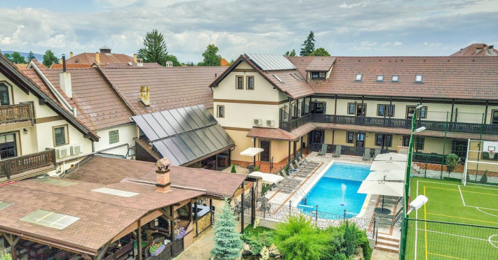 Near Dino Parc Rasnov. Located in Cristian, Conacul Ambient is in the mountains, within a 15-minute drive of Rasnov Fortress and Silviu Ploiesteanu Stadium. This 5-star hotel is 11.7 mi (18.8 km) from Bran Castle and 4.3 mi (6.9 km) from Dino Parc Rasnov. Make yourself at home in one of the 22 individually decorated guestrooms, featuring minibars and flat-screen televisions. Complimentary wireless Internet access keeps you connected, and cable programming is available for your entertainment. Bathrooms have complimentary toiletries and hair dryers. Conveniences include safes and desks, and housekeeping is provided daily. Enjoy a meal at the restaurant or snacks in the coffee shop/cafe. The hotel also offers room service (during limited hours). Relax with your favorite drink at the bar/lounge or the poolside bar. A complimentary buffet breakfast is served daily. After a day on the slopes, enjoy recreational amenities including an indoor pool and an outdoor tennis court. This hotel also features complimentary wireless Internet access, concierge services, and babysitting (surcharge). Getting to nearby attractions is a breeze with the area shuttle (surcharge).Datorita dinamicitatii domeniului disponibilitatea ofertelor se modifica de la un moment la altul. De aceea ofertele sunt valabile in limita locurilor disponibile. Agentia nu este responsabila pentru eventualele neconcordante care pot aparea intre informatiile privind tarifele si alte detalii din site si informatiile primite in agentie. In aceste cazuri vor avea prioritate, intotdeauna, informatiile primite in agentie.