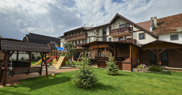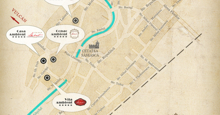 Conacul Ambient. Live Vintage. Love Luxury Vine o vreme cand parca simti o usoara adiere a trecutului mangaindu-ti pleopele...si uite asa, pe nesimtite, te trezesti in fata falnicelor porti ale conacului Ambient din Cristian, la 12 km de Brasov. Noua mosie are o mare virtute, dragi oaspeti, pentru ca aici si numai aici, De Mult-ul si Acum-ul s-au asternut la un taifas si isi talmacesc visurile chiar in jurul distinselor voastre prezente. Cristian- Si casele vorbesc Cristian este un taram al vesniciei. Aici, istoria si trainicia mestesugurilor sasesti este vie in fiecare minunatie de casa si fiecare coltisor de pamant, pastrandu-se frumusetea de odinioara pe care dragii nostri stramosi o pretuiau cu atata strasnicie. Conacul Ambient, noua mandrete a acestui tinut, este un loc in care zilele de odinioara parca sunt invesmantate in straie de duminica si nimic din ce iti pofteste inima nu lipseste. Miresme imbelsugate O mosie ca si Conacul Ambient trebuie sa isi intampine oamenii dupa datina stramoseasca cu ospitalitate si voie buna. Ce loc mai bun sa simtiti toate aceste decat sala mare de ospat? Indestulata pentru 50 de oameni , salanbsp; cea mare este rupta parca din povestile cu consanzene, neasemuit de dichisita cu catifele, scaune pictate, mese si bufete ca-n vremurile stravechi, orologii si potire de licori inmiresmate! Tihna si Odihna O dulce raza de soare poposeste stinghera pe divanul invesmantat cu urzeli delicate si dalbe broderii..apoi coboara lin pe dusumea si urca incetisor urmarindnbsp; linii catifelate si ordonat de intortocheate ale vreunei masute de toaleta, noptiere sau sifonier. Timpul chiar pare sa se fi oprit si totusi aici si acum, in acest domnesc dormitor, te simti mai acasa decat oriunde. Si conacul are 9 astfel de minunate camere (duble), inca 5 camere si mai spatioase (executive), 7 studiouri si un apartament, care mai de care mai mandrenbsp; la chip! Tot aici, aproape de Conacul Ambient, salasluieste si âAristocrataâ, o casuta dichisita sinbsp; luminoasa, unde te poti bucura de zile si noptinbsp; imparatesti si de unde poti ajunge,nbsp; daca iti doresti, direct in inima Conacului. Atunci, dar totusi acum Chiar daca frumoasele coridoare vegheate de vapai portocalii rasuna de ecouri stravechi, aici simti totusi...la fiecare pas... ca trecutul da mana prietenos cu prezentul si mai mult de atat, fac cea mai buna echipa! Dovezile sunt restaurantul traditional cu preparate grill si din bucataria locala,nbsp; apoi numeroasele coltisoare amenajate pentru parcare, pentru copii, pentru sporturi (mini fotbal, baschet, hadbal, volei, badminton), pentru jocuri (snooker, billiard, tenis de masa) si nu in ultimul rand piscina incalzita cu sauna si Jacuzzi. Si pentru ca imprejurimile Cristianului sunt printre nestematele Romaniei, te invitam in calatorii de o zi in zonele de interes turistic din apropiere(cetatea Rasnov, castelul Bran, bisericile fortificate din Prejmer, statiunea Poiana Brasov, etc). Vei deveni nu doar un client fidel al conacului ci si un adevarat promotor al istoriei noastre, pentru ca aici vei invata sa pretuiesti cu adevarat trecutul sinbsp; sa te bucuri in acelasi timp de fiecare secunda din prezent.nbsp; Bucuria ti-o poti manifesta dupa bunul tau plac si in locurile faimoase pentru distractie si adrenalina din zona, cum ar fi Parc Aventura, Paradisul Acvatic, Noua Gradina Zoologica, , Parcul dinozaurilor, zona de bungee jumping, sau te poti infrati cu natura intr-o calatorie cu ATV-ul, cu 4x4, pe jos,nbsp; sau cu bicicleta. Esti gata sa deschizi poarta trecutului si sa ne treci pragul? Atunci buna sa-ti fie inima, ca a noastra-i omenoasa si la noi simti ce inseamna cu adevarat acasa!Datorita dinamicitatii domeniului disponibilitatea ofertelor se modifica de la un moment la altul. De aceea ofertele sunt valabile in limita locurilor disponibile. Agentia nu este responsabila pentru eventualele neconcordante care pot aparea intre informatiile privind tarifele si alte detalii din site si informatiile primite in agentie. In aceste cazuri vor avea prioritate, intotdeauna, informatiile primite in agentie.