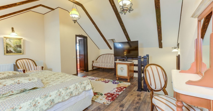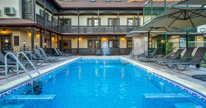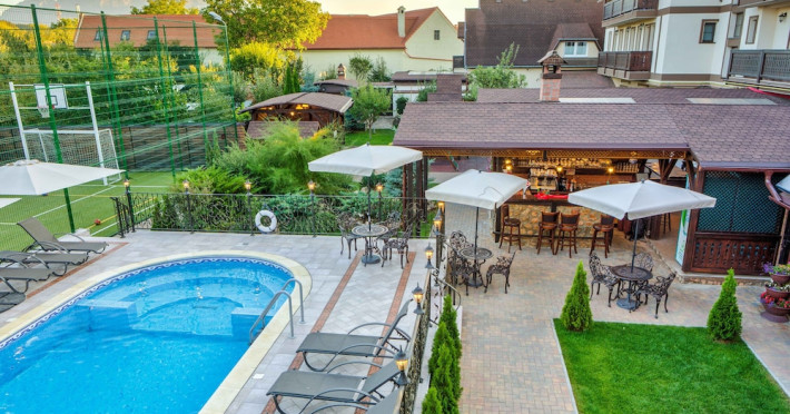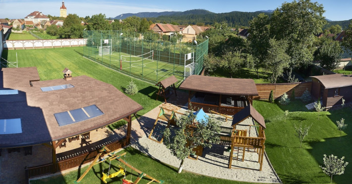 Offering an indoor and outdoor pool, a sauna and a restaurant, Conacul Ambient is located in Cristian. Free WiFi access is available in this resort. The property offers free parking. All elegantly furnished and soundproofing rooms at Conacul Ambient will provide you with a flat-screen cable TV. Featuring a shower, private bathroom also comes with a hairdryer, free toiletries and bathrobes. A tumble dryer is also provided. You can enjoy mountain view from the room. At Conacul Ambient you will find a multisport field, a snooker table and table tennis. Other facilities offered at the property include meeting facilities, a shared lounge and a games room. For little guests there is a children´s playground. Sport activities that can be enjoyed on site or in the surroundings, include cycling, horse-back riding and hiking. Guests of this property benefit from discounts and preferential prices to several restaurants, pubs, as well as cultural and touristic sites. The closest ski slope is reachable within a 10-minute drive as well as the Brasov Train Station. The nearest grocery store is 3 minutes on foot away.When booking more than 5 rooms, different policies and additional supplements may apply. WiFi is available in all areas and is free of charge. Free public parking is available on site (reservation is not needed). Pets are not allowed. Children of all ages are allowed. Children 3 and under stay for free when using an available crib. People no matter the age stay for 120 lei per person, per night when using an available extra bed. Any type of extra bed or crib is upon request and needs to be confirmed by management. Additional fees are not calculated automatically in the total cost and will have to be paid for separately during your stay.Checkin Time: 15:00Checkout End Time: 12:00Hotel important information: In response to the coronavirus (COVID-19), additional safety and sanitation measures are in effect at this property. Please note that meals can be served only until 22:00. Kindly note that vacation vouchers is an accepted method of payment in this property.Datorita dinamicitatii domeniului disponibilitatea ofertelor se modifica de la un moment la altul. De aceea ofertele sunt valabile in limita locurilor disponibile. Agentia nu este responsabila pentru eventualele neconcordante care pot aparea intre informatiile privind tarifele si alte detalii din site si informatiile primite in agentie. In aceste cazuri vor avea prioritate, intotdeauna, informatiile primite in agentie.