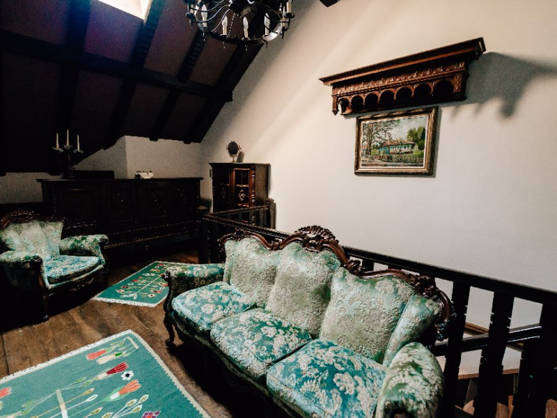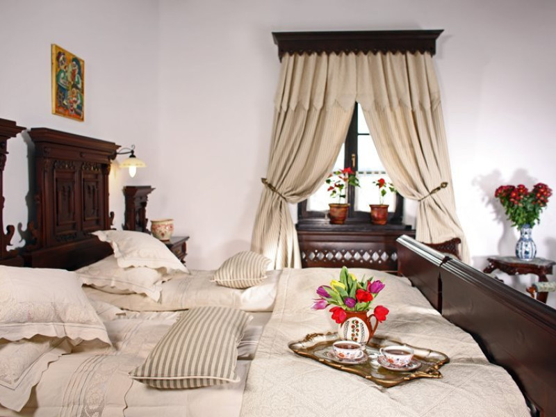 Fiecare dincele 18 camere ale conacului isi are povestea sa, incrustata in detalii sarmante: mobilier istoric autentic, scoarte si covoare traditionale, lazi dezestre si panzeturi scrobite.