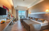 - 2 royal suite cu trei camere (living, 2 dormitoare cu usa, 2 TV; intr-o camera de acest tip exista un birou, minibucatarie si jacuzzi, max. 4 pers., 82 - 134 m2).Camerele sunt spatioase si dotate cu baie, foehn, halat si papuci, aer conditionat centralizat, TV, telefon minibar (bauturi racoritoare si bere se suplimenteaza zilnic - gratuit) seif (gratuit) si balcon. Se face zilnic curatenie in camera, iar lenjeria se schimba de 3 ori/saptamana. Internet WiFi (gratuit).