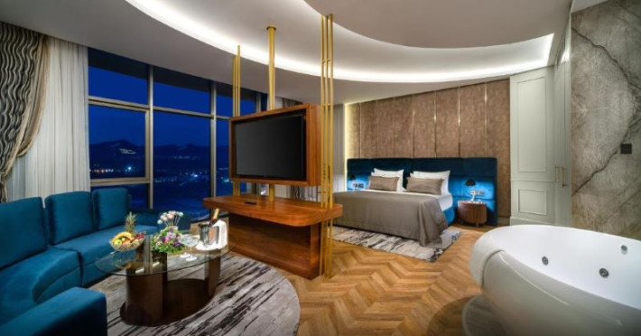 Hotelul oferă două piscine pentru relaxare și distracție în apă, patru restaurante pentru diversele gusturi culinare, WiFi gratuit pentru conectivitate, spa și centru de wellness pentru răsfăț, sală de fitness bine echipată, room service pentru confort, lounge comun pentru relaxare și socializare, precum și o terasă minunată pentru momente de relaxare în aer liber.