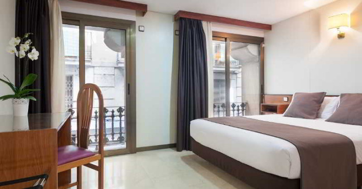 The hotel is located in a pedestrian street of the Old Town of Barcelona. The Liceu Theatre is 300 m from the hotel. Plaza Catalunya and the MACBA museum are 1.1 km away, while the cathedral is 900 m from the hotel, all just a short walk from the hotel. La Sagrada Familia is around 2.5 km away. La Ramblas is just some 100 m away and the beach at Barceloneta is around 1 km from the hotel. La Pedrera by Antoni Gaudí, also called Casa Milà, is around 1.8 km away.||The hotel opened in 1850, which makes it one of the oldest hotels in Barcelona. It was refurbished in 2000, keeping the original façade while completely rebuilding the interior, and now offers a total of 53 rooms, as well as a bar, lift access to the rooms and wireless Internet access throughout the building. This air-conditioned establishment offers non-smoking rooms.||All rooms have individually regulated air conditioning and heating, a TV, telephone, desk, wireless Internet access, a safe and a private bathroom with a shower.