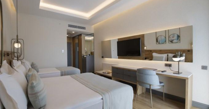 Camerele twin au in dotare 2 paturi care se pot uni, baie cu cabina de dus, telefon, mocheta, TV, aer conditionat, minibar, internet, uscator par.Camerele au o suprafata de 22 mp.