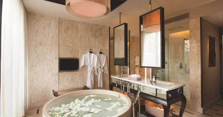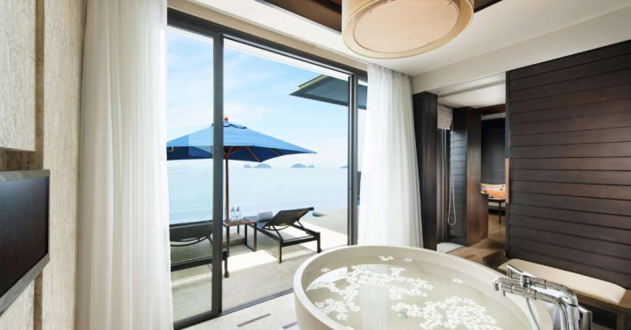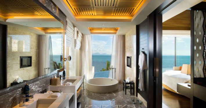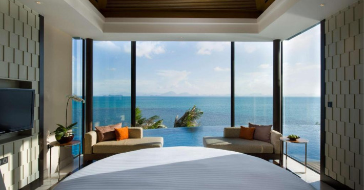 Elegantul Conrad Koh Samui oferă o evadare de lux și privată pe malul mării, cu vedere la Golful Thailandei. Vilele mari au piscine infinite private și WiFi gratuit.