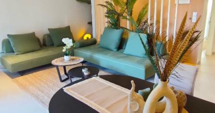 Each suite features a fully equipped kitchen with modern appliances, stylish décor, a spacious living area, a private balcony, comfortable beds, and free Wi-Fi. The design ensures comfort, relaxation, and a touch of luxury throughout your stay.
