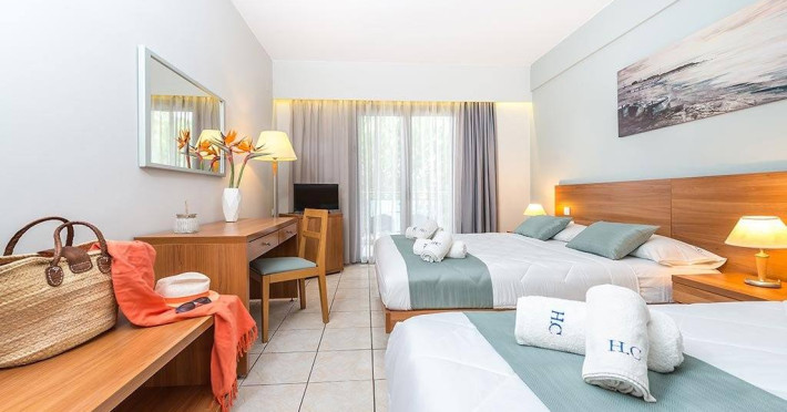 Sunt disponibile 92 camere. Unele camere au balcon cu vedere la mare sau la piscină. Camerele luminoase de la Contessa Hotel sunt dotate cu parchet, aer condiționat, Tv și seif. În camere există baie cu cadă sau duș prevăzută cu foehn. Fiecare cameră dispune de minibar. Oaspeții au acces gratuit la serviciul Wi-fi în camere. Curățenia in cameră se face zilnic. Toate camerele spațioase de la Contessa Hotel au zonă de relaxare. Proprietatea oferă camere pentru familie cu o suprafață mai mare și un număr mai mare de paturi față de cele standard. Se pot rezerva de asemenea camere pentru nefumători.