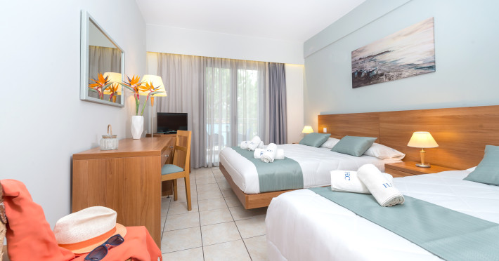 Welcome to Contessa Hotel where the magnificent view of the Ionian Sea, the mountain and the green landscape gives you the feeling of tranquility and relaxation from the very first moment of your arrival. Hotel Contessa is located in an idyllic location just 250 meters from the beach of Argassi and less than 5 minutes away from the center of Argassi on foot which offers a plethora of bars, restaurants and shops. All facilities in rooms (A/C, Safe & Mini Fridge) are on Extra Charge, payable locally .