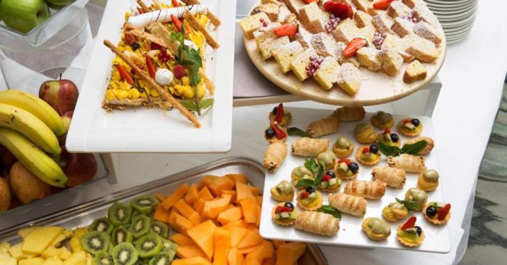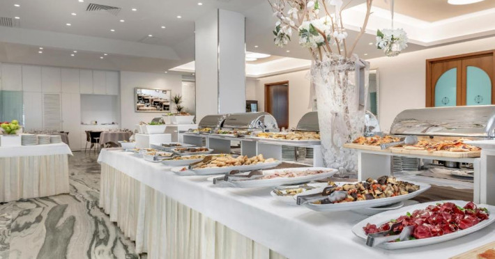 In fiecare zi este servit un mic dejun tip bufet. Restaurantul, potrivit pentru banchete și evenimente speciale, oferă mancăruri mediteraneene, internaționale și locale. Preparate pentru diete speciale sunt disponibile la cerere.