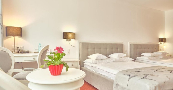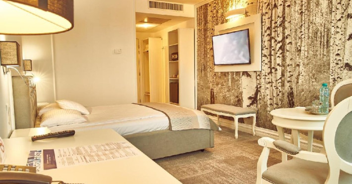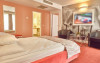 - 1 apartament Deluxe plus Family, dotat cu 2 paturi duble de 140 cm ce poate gazdui pana la 4 persoane.
