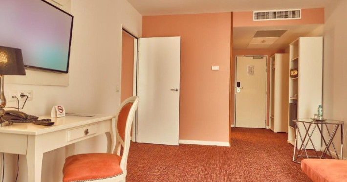 - 14 camere Deluxe Plus Family cu vedere la Palatul Parlamentului, cu 2 paturi de 140 cm, avand o suprafata de 27 mp.Camerele Family au WIFI gratuit, Televizor LCD, minibar, espressor de cafea, ceai si cafea, seif, cosmetice la baie, uscator de par, halat si papuci.