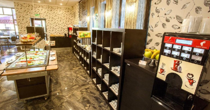 Unitatea pune la dispozitia oaspetilor sai un mic dejun bufet oferit in cafenea. Optiunile de luat masa la fata locului includ un restaurant cu specific traditional, insa acesta serveste si o mare varietate de preparate internationale, menite sa incante toate gusturile turistilor.