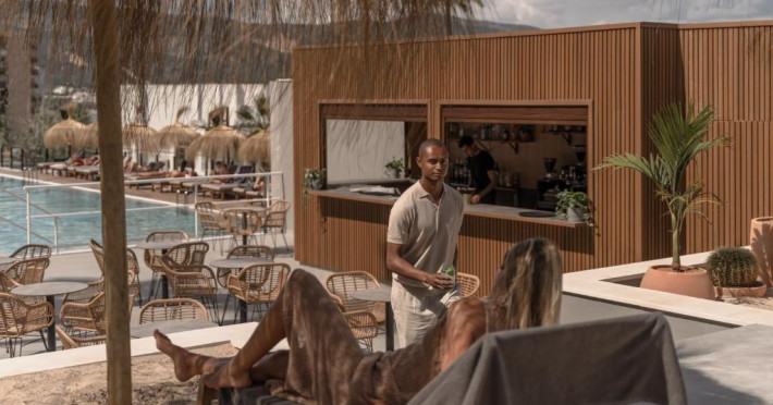 Punctul forte al hotelului este zona de piscină cu șezlonguri și bar, unde muzica lounge creează o atmosferă perfectă pentru relaxare. Restaurantul principal servește preparate mediteraneene, iar barul de la piscină oferă cocktailuri rafinate și gustări pe tot parcursul zilei.