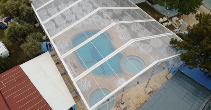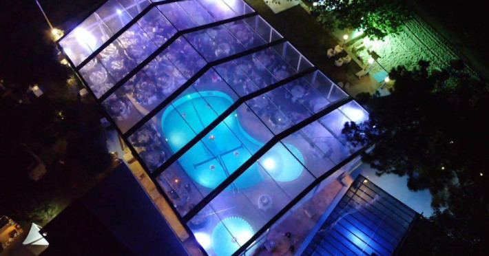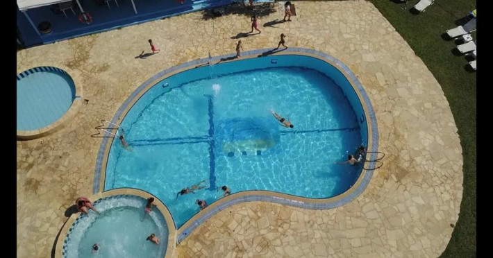Copiii se pot distra la piscina special amenajată pentru ei.