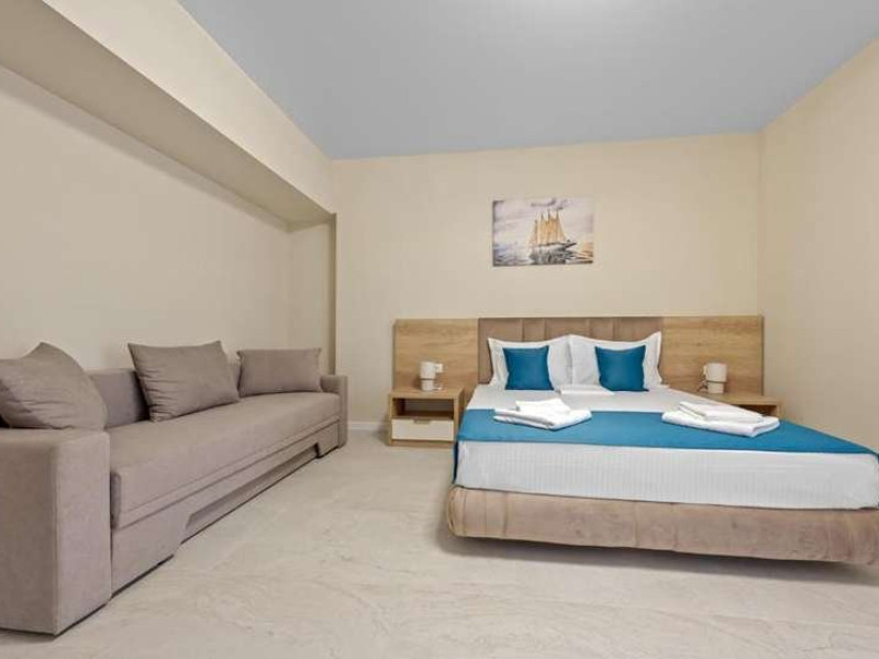 Coral Studio Eforie Nord - clasificat 3 stele, este situat in zona nordica a statiunii, la aproximativ 450 de metri de plaja.Lansat in anul 2024, localizat intr-o cladire de 8 etaje, deservite de lift, Coral Studio dispune de studiouri si apartamente spatioase, dotate cu aer conditionat, LCD tv, internet wireless si baie cu cabina de dus si uscator de par. Toate spatiile de cazare ofera bucatarie separat cu usa, echipate cu plita, frigider, microunde, vesela, fierbator. De asemenea, au balcon mobilat.