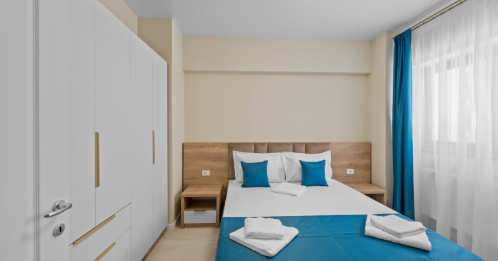 Coral Studio 3*** Eforie Nord este situat in zona nordica a statiunii, la aproximativ 450 de metri de plaja. Lansat in anul 2024, localizat intr-o cladire de 8 etaje, deservite de lift, Coral Studio dispune de studiouri si apartamente spatioase, dotate cu aer conditionat, LCD tv, internet wireless si baie cu cabina de dus si uscator de par. Toate spatiile de cazare ofera bucatarie separat cu usa, echipate cu plita, frigider, microunde, vesela, fierbator. De asemenea, au balcon mobilat. Toate studiourile Coral Studio sunt situate la etajul unu. Coral studio pune la dispozitie parcare privata, oferita gratuit. Exista cate un loc asigurat pentru fiecare studio si apartament. Coral Studio este deschis tot timpul anului.Datorita dinamicitatii domeniului disponibilitatea ofertelor se modifica de la un moment la altul. De aceea ofertele sunt valabile in limita locurilor disponibile. Agentia nu este responsabila pentru eventualele neconcordante care pot aparea intre informatiile privind tarifele si alte detalii din site si informatiile primite in agentie. In aceste cazuri vor avea prioritate, intotdeauna, informatiile primite in agentie.