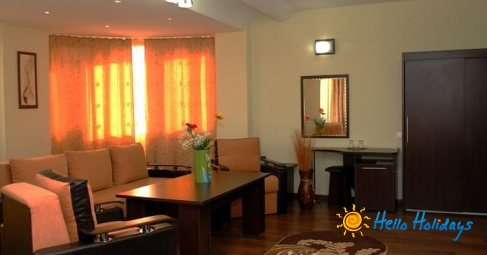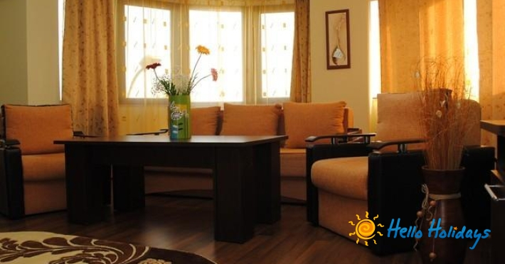 Apartamentele dispun de: 2 camere, 2 balcoane, TV in living, aer conditionat, Wi-Fi, bai cu cada, bideu si uscator de par, minibar. A patra persoana cazata in apartament va achita suplimentar contravaloarea unui mic dejun. Suprafata 36 mp