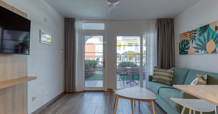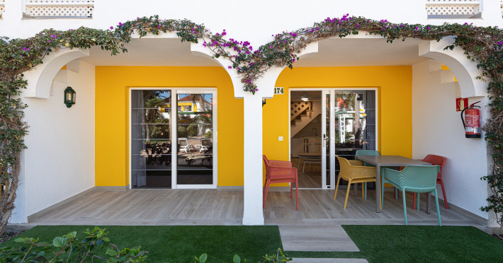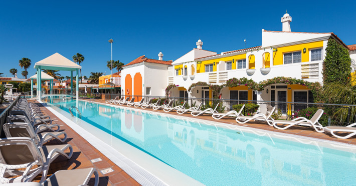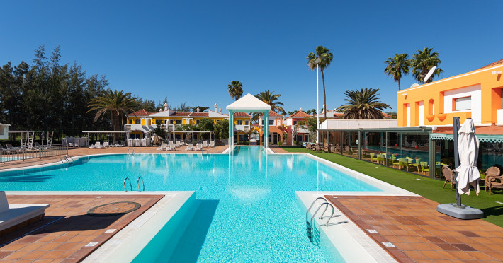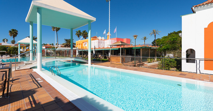 Cordial Green Golf Bungalows is located next to the golf course of Maspalomas, a few minutes from the dunes and the Shopping Centre Faro 2, which offers a variety of restaurants, shops and bars. The facilities and services include 24 h reception, WiFi in public areas, bar and restaurant, outdoor pools (one of them heated in winter), children´s pool, sun terrace, gardens, children´s playground. It also offers billiards (with extra charge), day activity programme and occassional evening entertainment. The apartments are equipped with ceiling fan, TV, telephone, living room with sofa bed, safe (with extra charge), kitchen equipped with toaster, coffee maker and fridge, balcony/terrace and bathroom with shower. Cordial Green Golf has been awarded the prestigious Travelife Gold sustainability certificate, which certifies excellent international sustainability and Corporate Social Responsibility practices, and the implementation of responsible tourism practices. * The apartments are cleaned 5 times a week. ** Please note that some of the above facilities may be closed due to weather, seasonal conditions.** Address: Avda. De Tjaereborg s/n, 351 00 Maspalomas - Gran Canaria, Spain.Datorita dinamicitatii domeniului disponibilitatea ofertelor se modifica de la un moment la altul. De aceea ofertele sunt valabile in limita locurilor disponibile. Agentia nu este responsabila pentru eventualele neconcordante care pot aparea intre informatiile privind tarifele si alte detalii din site si informatiile primite in agentie. In aceste cazuri vor avea prioritate, intotdeauna, informatiile primite in agentie.