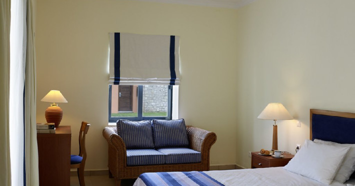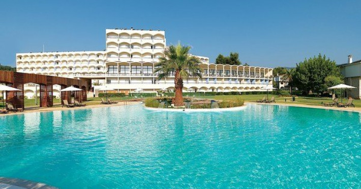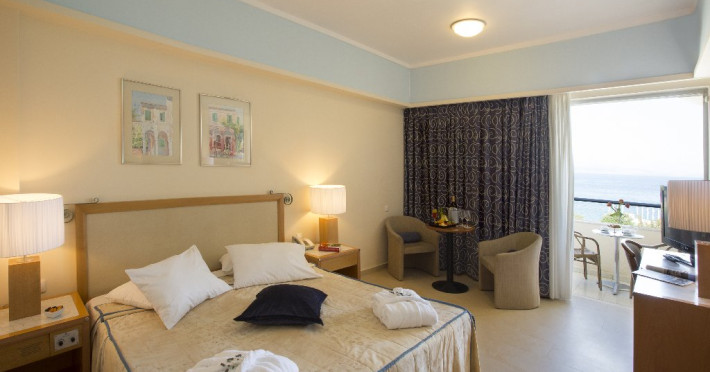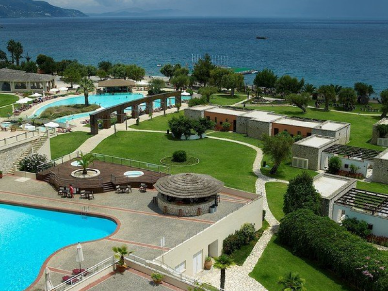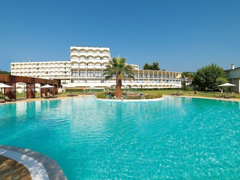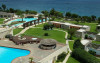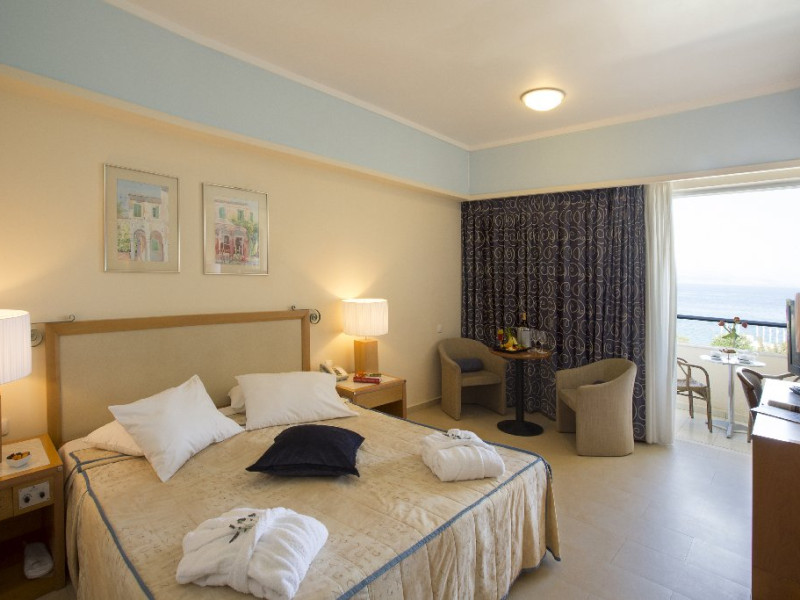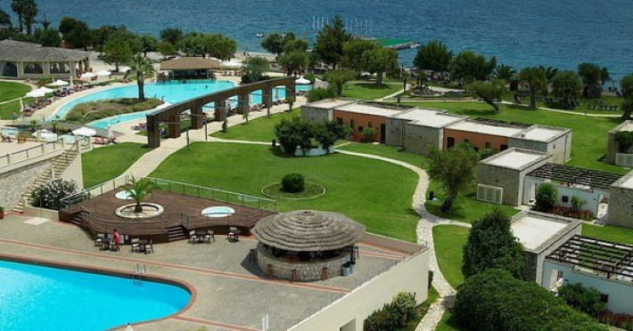 Facilitati hotel: mic dejunul sau cina se pot servi la restaurantul tip bufet Alkinoos, dar oaspetii pot savura si preparate mediteraneene la restaurantul a la carte Aqua. Taverna de pe plaja asigura pranz cu autoservire. Pentru oaspeti mai exista 2 baruri pe plaja si 2 baruri langa piscina. Alte facilitati ale hotelului ar fi: 3 terenuri de tenis, 3 piscine, acces gratuit la sala de fitness ultramoderna a hotelului, centru spa cu sauna, o cada cu hidromasaj, o baie de aburi si camere de masaj. Hotelul este perfect pentru familiile cu copii pentru ca are mini club si loc de joaca pentru copii. Exista si un cinematograf in aer liber si o piscina destinata exclusiv copiilor.