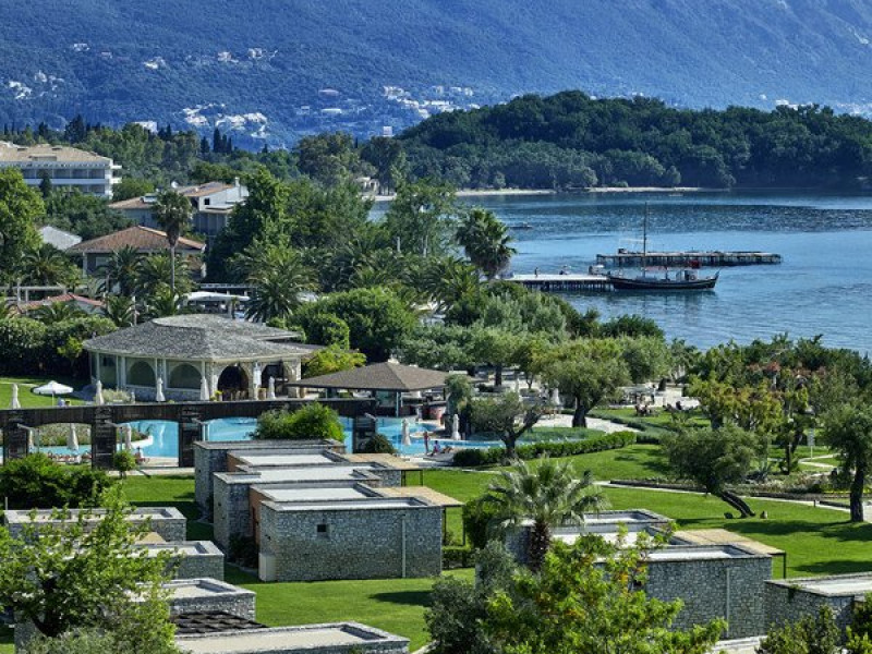 Hotelul Corfu Chandris este amplasat pe plaja si se bucura de o locatie ideala pentru plimbari romantice de-a lungul golfului Dassia. Se afla la 11 km de orasul Corfu si la 5 km de un teren de golf cu 18 gauri.Dotari camere: hotelul ofera camere elegante cu vedere superba la mare i bungalouri inconjurate de gradina linistita - una dintre cele mai frumoase gradini din Corfu. Dotarile camerlor includ aer coditionat, radio, TV satelit, uscator de par, minibar, seif.