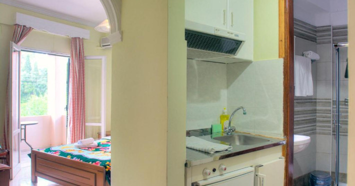 located in Agios Gordios of Corfu, is a family accommodation within 80 meters