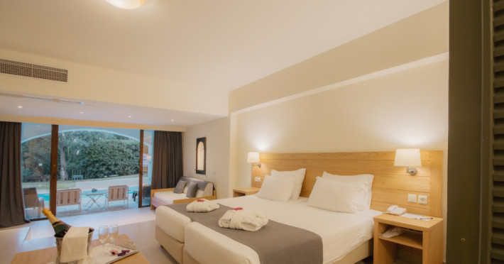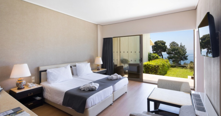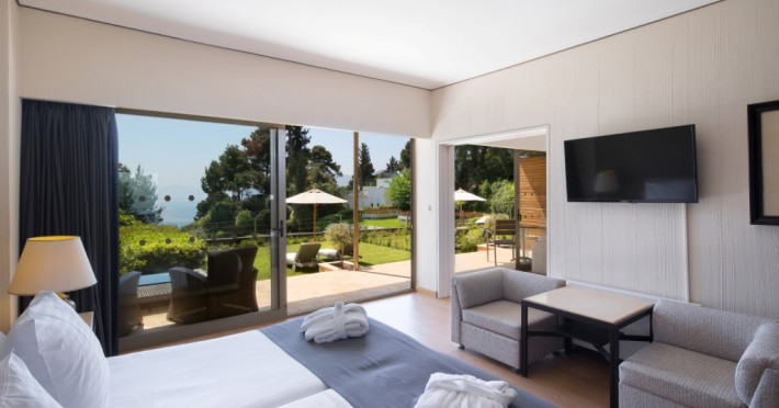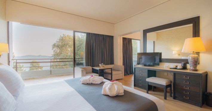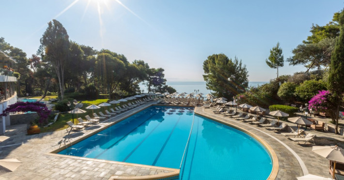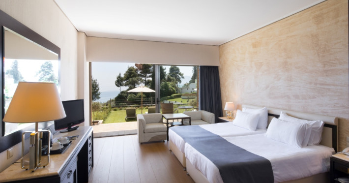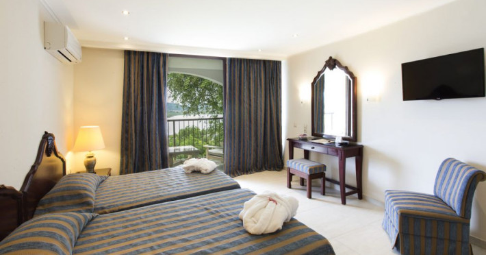 Corfu Holiday Palace 5* historic hotel offers an unforgettable stay and it is blessed with the best direct breathtaking views of the Ionian Sea, the landmark of Corfu, Mouse Island, “Pontikonisi” in Greek, and the quaint Monastery of the Virgin Mary of Vlacherna. Its ideal location offers easy access to important sites of Corfu, as well as the island’s stunning beaches. Welcome to your unforgettable holidays at Corfu Holiday Palace! In a lush natural setting of pine trees, cypresses, flowers, and a charming private beach lapped by emerald waters, you will find the Corfu Holiday Palace gracefully nestling on the tip of the cosmopolitan peninsula of Kanoni in an area of 40 acres characterized by unique beauty, only 4 km away from the historic center of Corfu Town (UNESCO World Heritage site).Datorita dinamicitatii domeniului disponibilitatea ofertelor se modifica de la un moment la altul. De aceea ofertele sunt valabile in limita locurilor disponibile. Agentia nu este responsabila pentru eventualele neconcordante care pot aparea intre informatiile privind tarifele si alte detalii din site si informatiile primite in agentie. In aceste cazuri vor avea prioritate, intotdeauna, informatiile primite in agentie.
