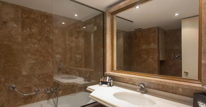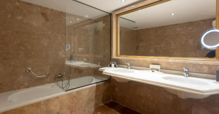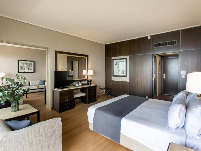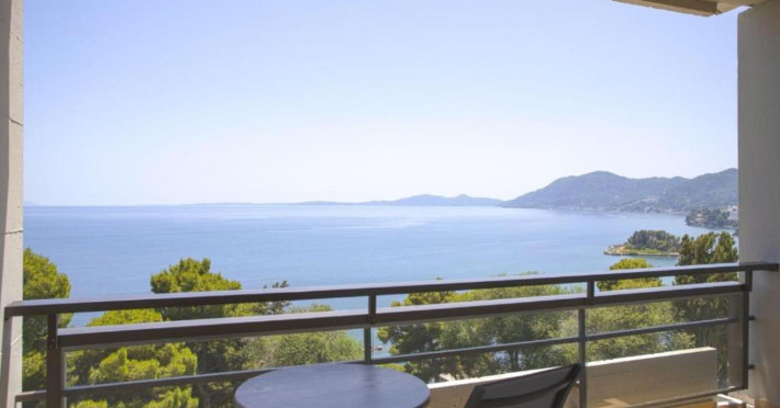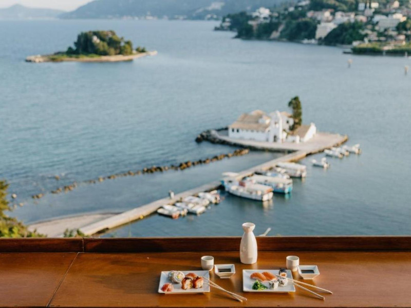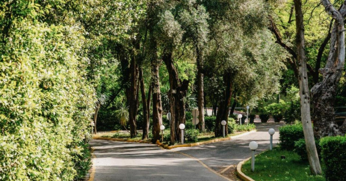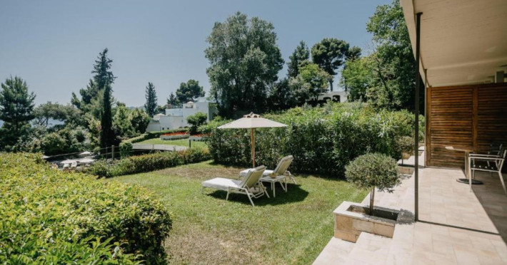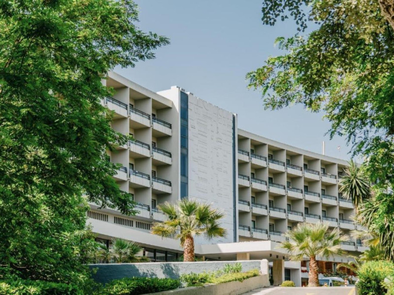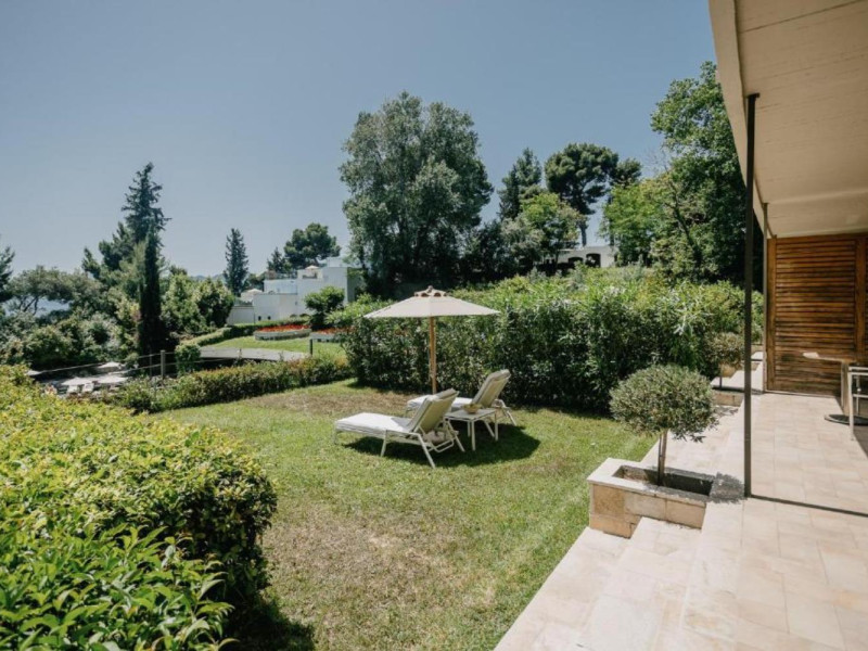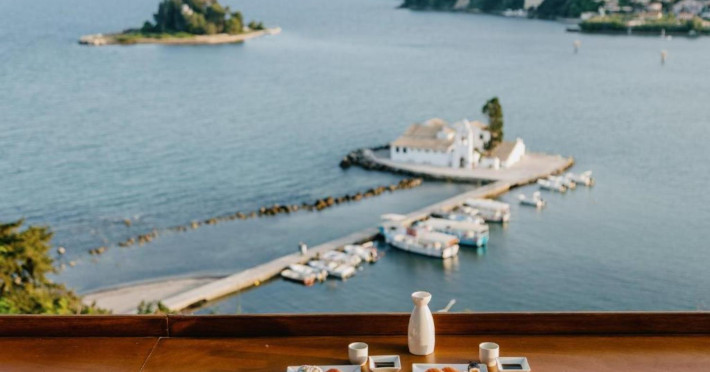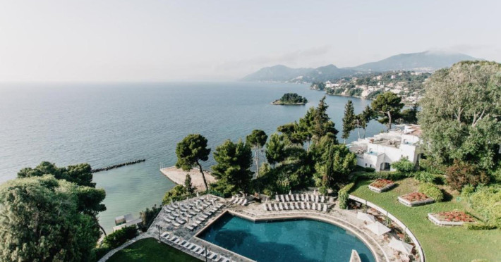 The 5-star Corfu Holiday Palace Hotel, ex Hilton International, is the only hotel with a direct view to the famous landmark of the island, Pontikonissi, and the monastery of Mary of Vlachernes, just 4km away from the old town of Corfu (UNESCO historical monument), built in Kanoni, in a 45,000 square meters area, on a peninsula which has been characterized as one of particular natural beauty with pine trees, cypresses, eucalyptuses and a magical beach with green-blue waters.