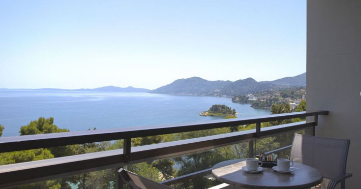 Hotelul Corfu Holiday Palace dispune de una dintre cele mai bune locatii cu o vedere panoramica asupra Marii Ionice. Locatia sa ideala ofera acces usor la locurile importante din Corfu, precum si la plajele uimitoare ale insulei. Se afla intr-un cadru natural luxuriant de pini, chiparosi, flori si o plaja privata fermecatoare cu ape de smarald.Localizare