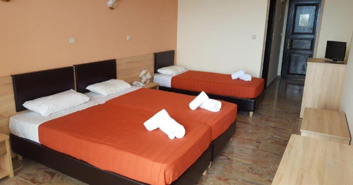 Camerele elegante si confortabile creeaza un nivel inalt de ospitalitate greceasca moderna. Este format din 3 etaje cu 41 de camere spatioase, toate cu balcoane si vedere la mare. Toate camerele de la Corfu Maris au TV prin satelit, minifrigider, baie privata cu dus si uscator de par.