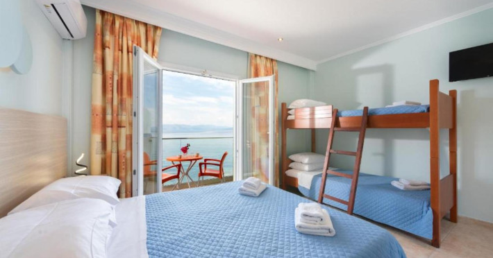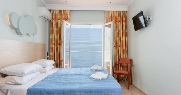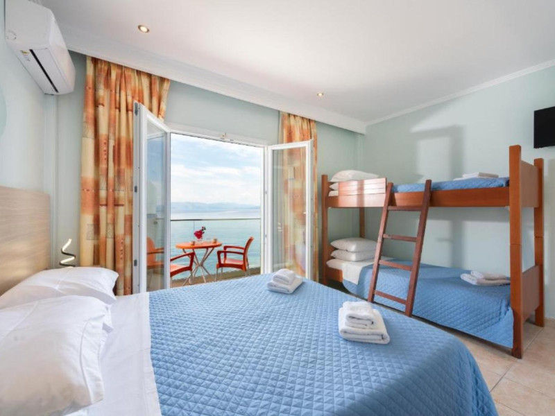 Offering a restaurant and a bar, the seafront Corfu Maris is located right on Benitses Beach. It features air-conditioned accommodation with views over the Ionian Sea. Free WiFi access is available.
